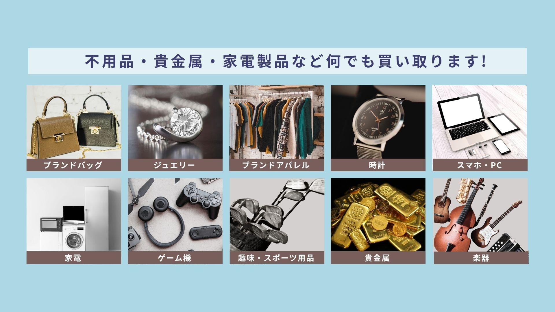 アクセサリー・ブランド品・地金・切手・商品券、貴金属、電動工具など新古・中古を中心とした古物買取
